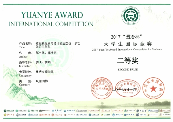 近日,从北京召开的第八届园冶高峰论坛暨亚洲园林大会传来消息,我校林学与生命科学学院娄娟教授、娄飞高级工程师领衔的学生创意设计团队在2017年“园冶杯”大学生风景园林国际竞赛中获得佳绩,荣获二等奖2项、优胜奖1项。其中,“被重新规划与设计的生态位·多功能的三角形”和“呼吸的梯道山地空间景观概念再造”分别获得毕业设计组别二等奖和课程设计组别二等奖,“穿越时空的雕塑——重庆永川兵工厂旧址景观更新设计”获得课程设计组别荣誉奖。该奖项的获得实现了我校学生在国际级景观设计竞赛中获奖零的突破。林学院获得大赛组委会颁发的“先进集体奖”和“优秀组织奖”。