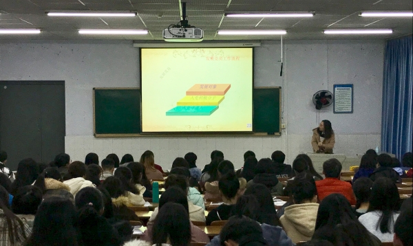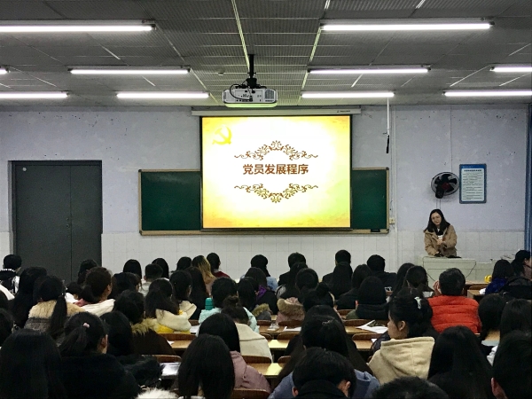 首先,支部书记周凡力简单介绍了党员发展工作的总流程,并讲解了入党申请人、入党积极分子等与发展有关的概念。然后分阶段具体介绍了每个发展工作流程,材料要求以及其中的注意事项。最后,周凡力老师对学生提出倡议,希望大家能真正从思想上改变自己,要把加入党组织作为继续前进的新起点,用党员的标准严格要求自己,不断学习,努力进步,用实际行动实践入党誓言,成为一个名符其实的共产党员。