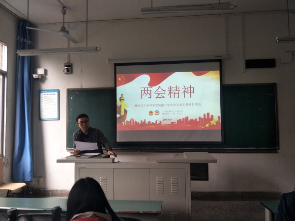 2019年3月27日,林学与生命科学学院党总支学生第二支部在听湖楼XJ-1205开展主题党日活动,活动主要以认真学习全国 “两会”精神为主题。专职组织员、学生第二支部书记贺方云老师主持会议。