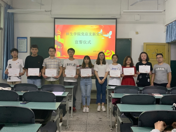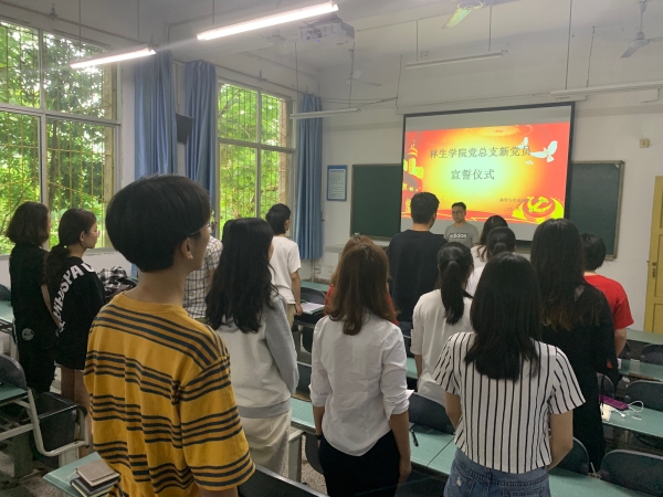 2019年6月28日,林学与生命科学学院党总支2019年上半年新党员宣誓仪式在星湖校区1107教室举行。出席本次活动的有学院团总支书记、专职组织员贺方云,支部书记周凡力及20名新发展党员,会议由贺方云老师主持。
