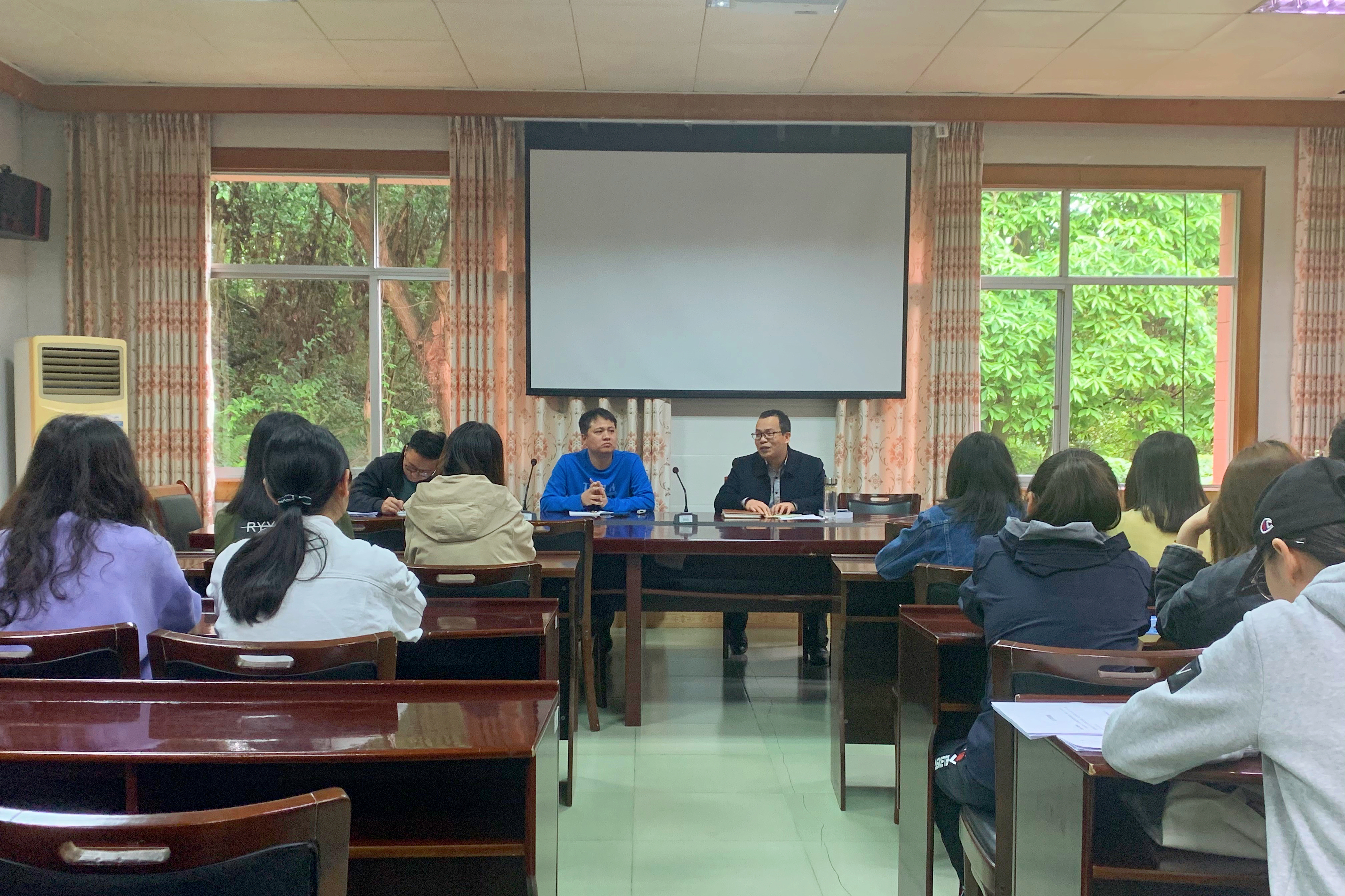孙翰昌根据同学们介绍的情况,从就业形势,高校毕业生就业特点以及相关就业政策进行了宣讲。最后,谢荣成就学生就业面试技巧进行了培训,强调了外部形象和内涵两方面着手准备,提高就业自信心。