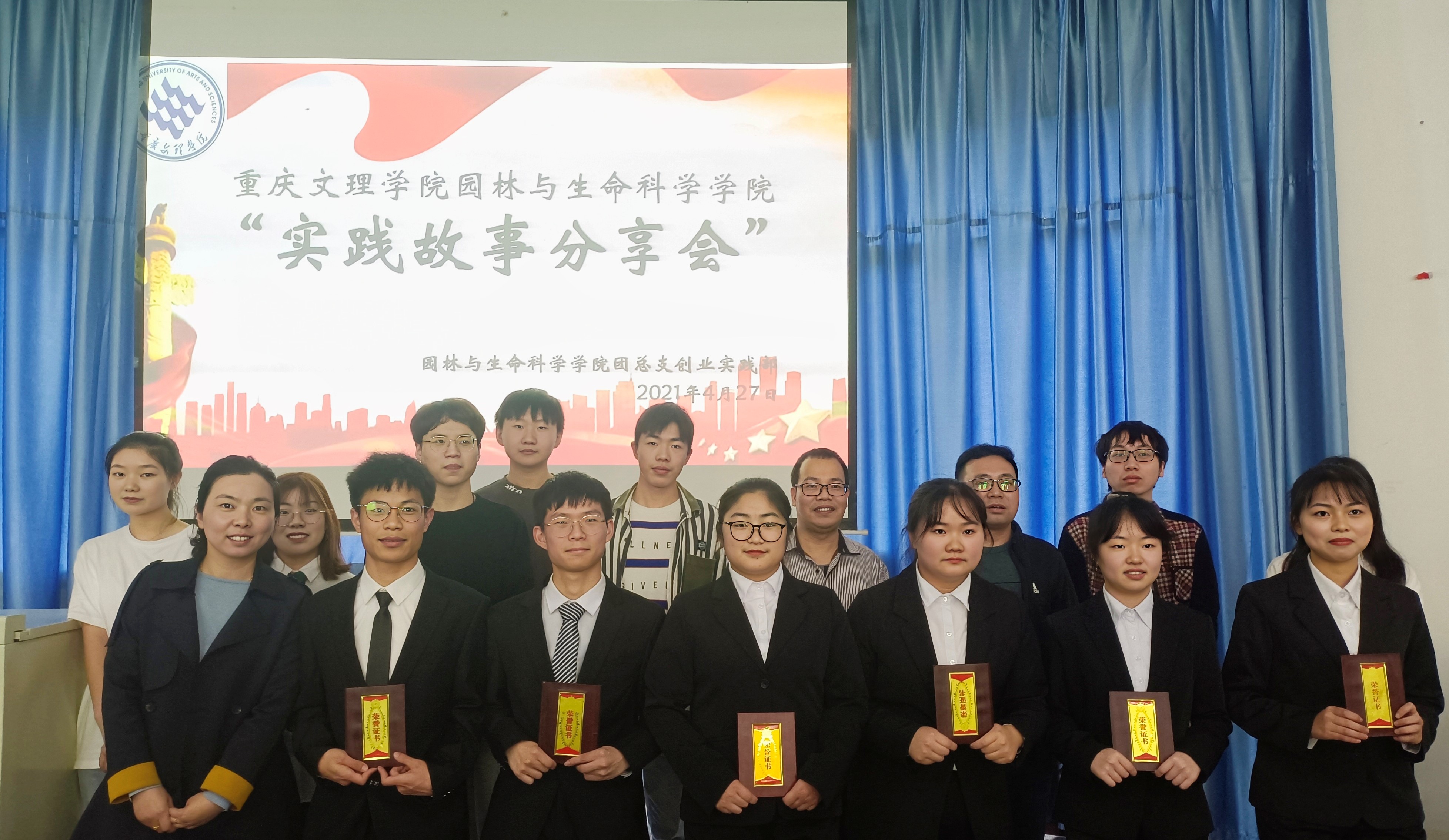 2021年4月27日,园林与生命科学学院关工委、团总支在望湖楼2600举办了以“学雷锋,重实干”为主题的实践故事分享会。出席本次大会的有党总支副书记、副院长孙翰昌,团总支书记贺方云,辅导员黄威老师,校级团学组织学生干部代表以及学院两委会学生干部干事共计140余人,分享会由王丹、缪宇翔同学主持。