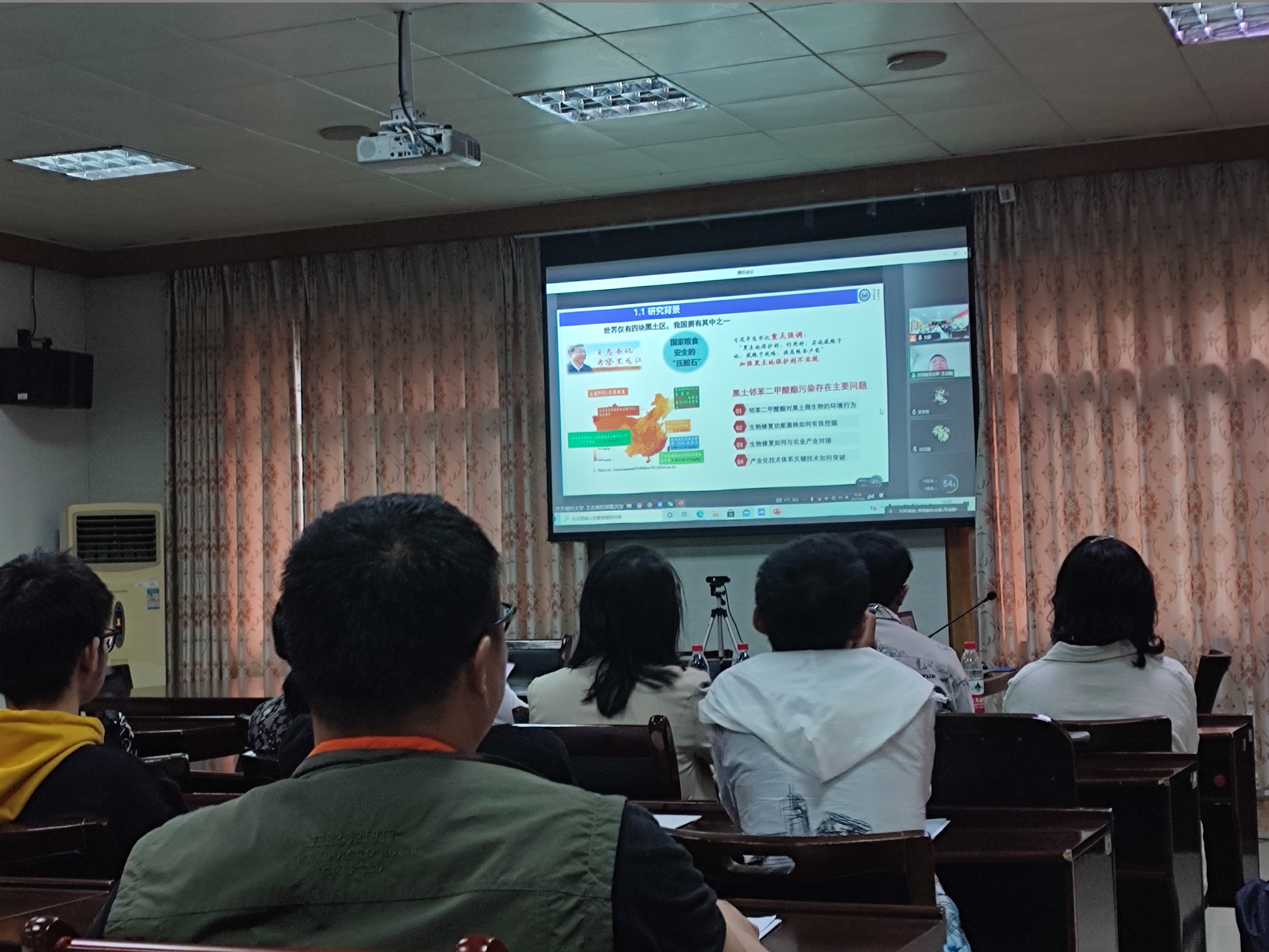随后,北京农学院尚巧霞教授和齐齐哈尔大学王志刚教授还与我院师生们开展了线上交流。尚巧霞教授是北京市教育委员会青年拔尖人才、北京市“科技新星”,她介绍了北京农学院的师资力量、专业特色及研究生招生就业情况,并热情邀请我院学生报考该院研究生。王志刚教授是博士生导师、黑龙江省创新人才领军人才梯队带头人、黑龙江省农业微生物制剂产业化技术创新中心主任,他以“黑土微生物资源与开发利用”为主题,为师生们做了一场精彩的研究报告,他谈到,微生物资源广泛,具有很好的开发利用前景,特别是黑土中的微生物资源挖掘与原位生物修复技术体系的构建非常有价值,他们已经创制了高活性粉剂微生物肥料产业化技术体系,为实现农作物的生物防治提供了良好的技术支撑。
