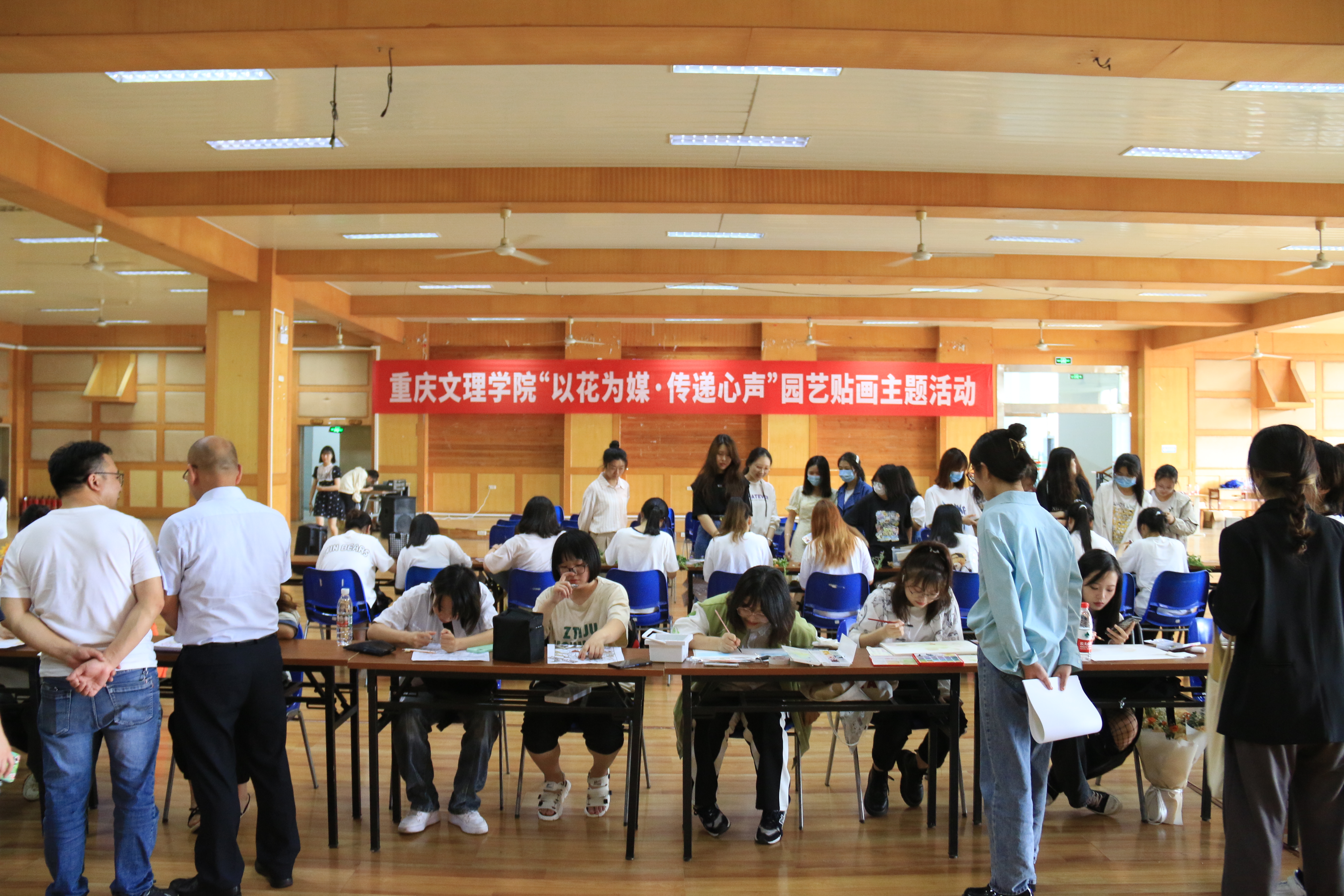 5月11日,我院关工委、团总支在星湖校区学生活动中心三楼举办“以花为媒,传递心声”园艺贴画主题活动,学校党委学生工作部副部长李兴春,学院党总支副书记、副院长孙翰昌,校友庞洪、刘杰以及教师代表、学生代表共计200余人参加了活动。