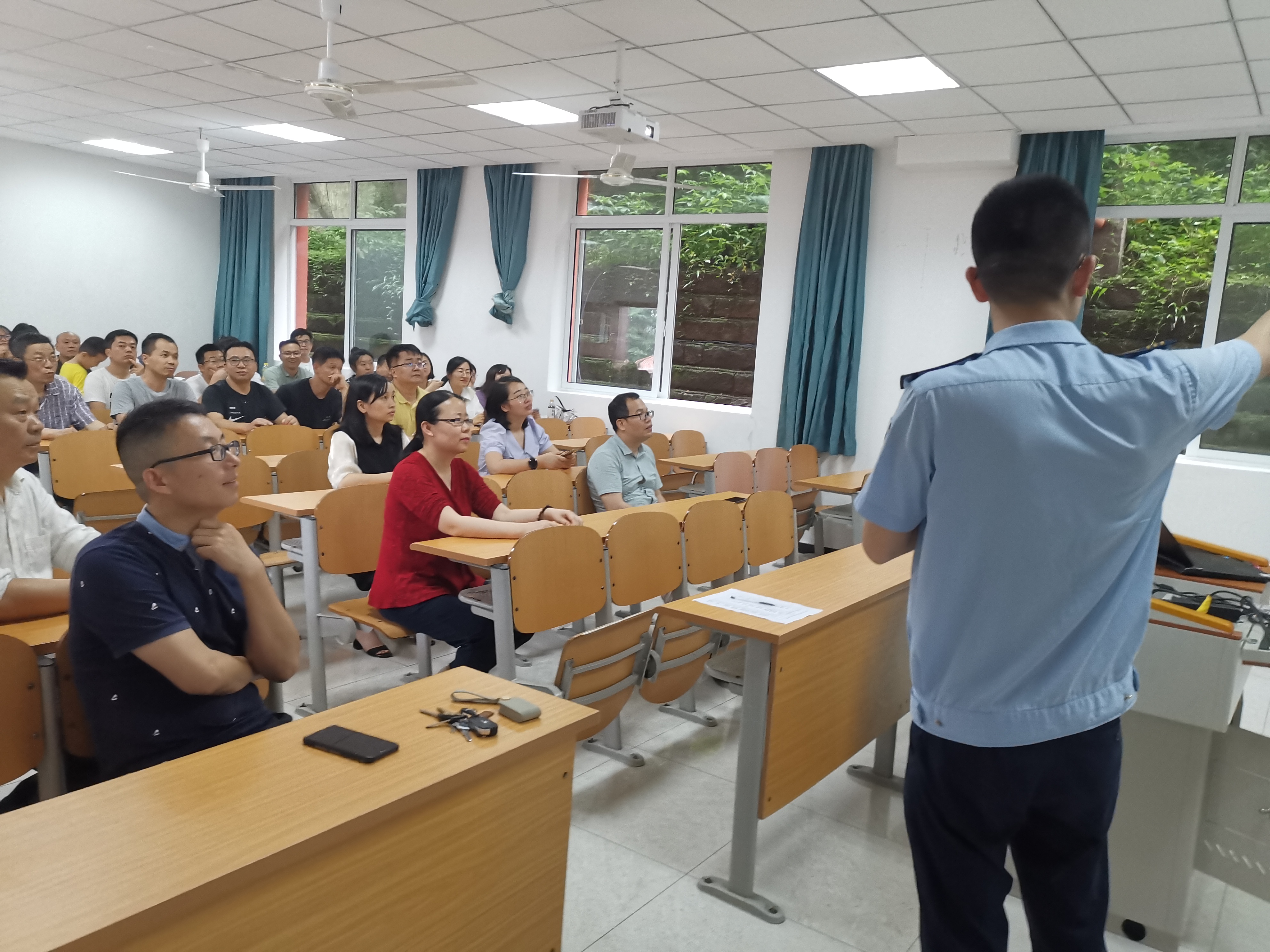 6月1日, 学院联合党委保卫部开展了消防知识培训、应急逃生和消防器材实战演练。重庆市利民防火宣传培训中心胡云波教官结合在一线抢险救援的实战经验,开展了防火、灭火、逃生、自救等方面知识的培训,并指导师生开展了灭火和应急逃生演练。