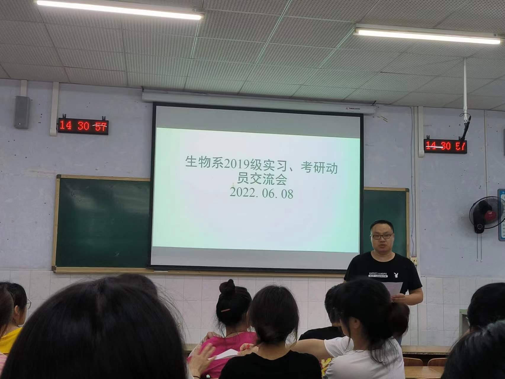 2022年6月8日,我院生物系教研室组织生物系教师、2019级生物技术和园艺专业学生在星湖7阶开展毕业实习与考研动员、交流。
