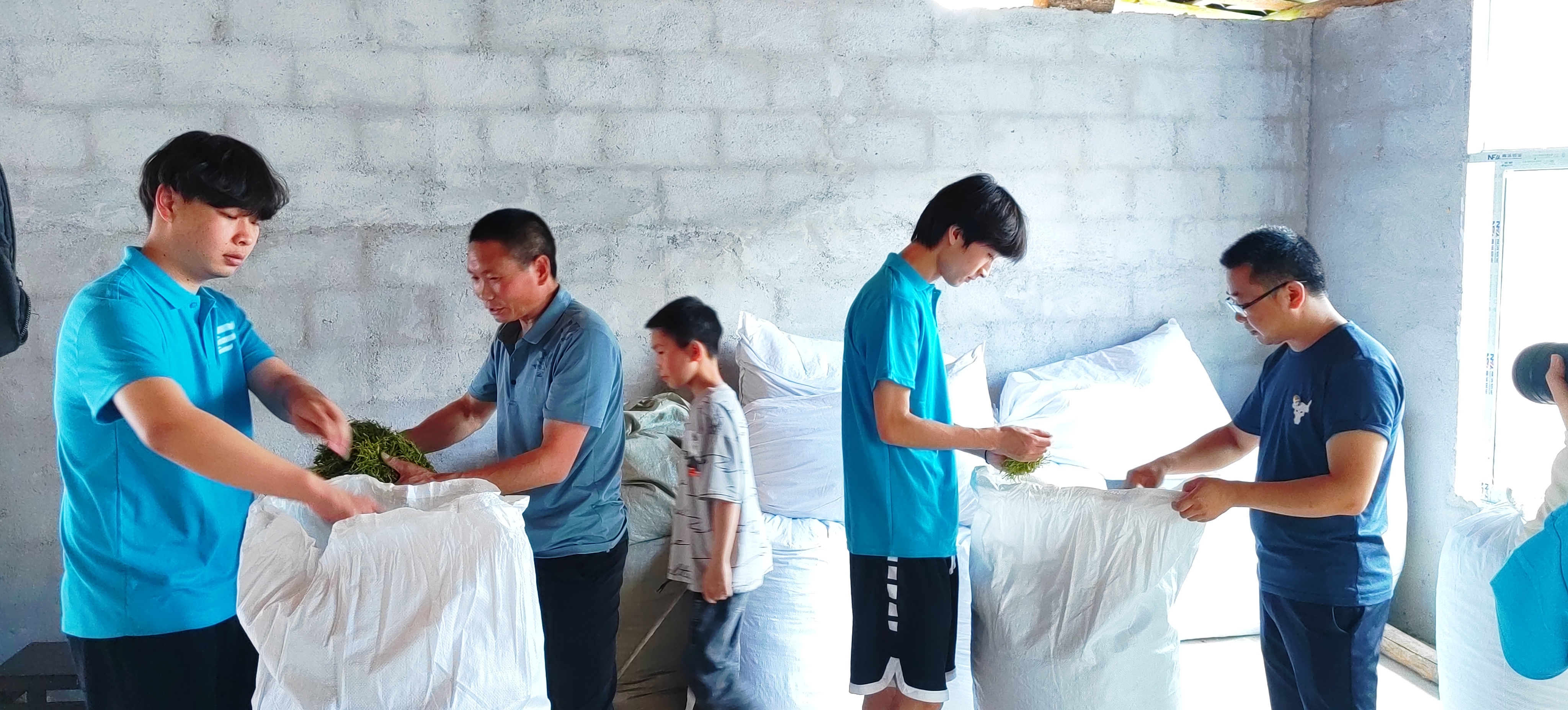 6月30日下午,团队成员前往桐梓镇香树村,在驻村第一书记江绍虎引导下,前往金银花种植基地采摘金银花,在金银花加工厂参与金银花的挑选、杀青、烘干和装袋等生产过程。随后,团队与村委干部、加工厂负责人就金银花种植、田间管理、病虫害防治、销售模式等方面进行了深入探讨。最后,大家还一起走访和看望了留守儿童代表。