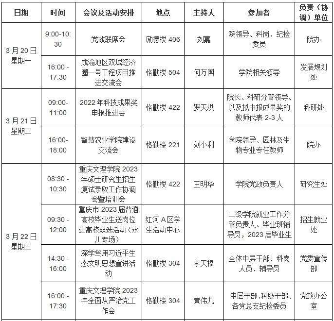 园林学院2022—2023学年第二学期第5周会议 (活动)及工作安排