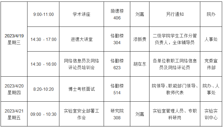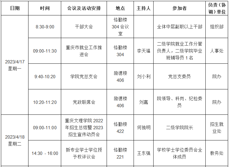 园林学院2022—2023学年第二学期第9周会议 (活动)及工作安排