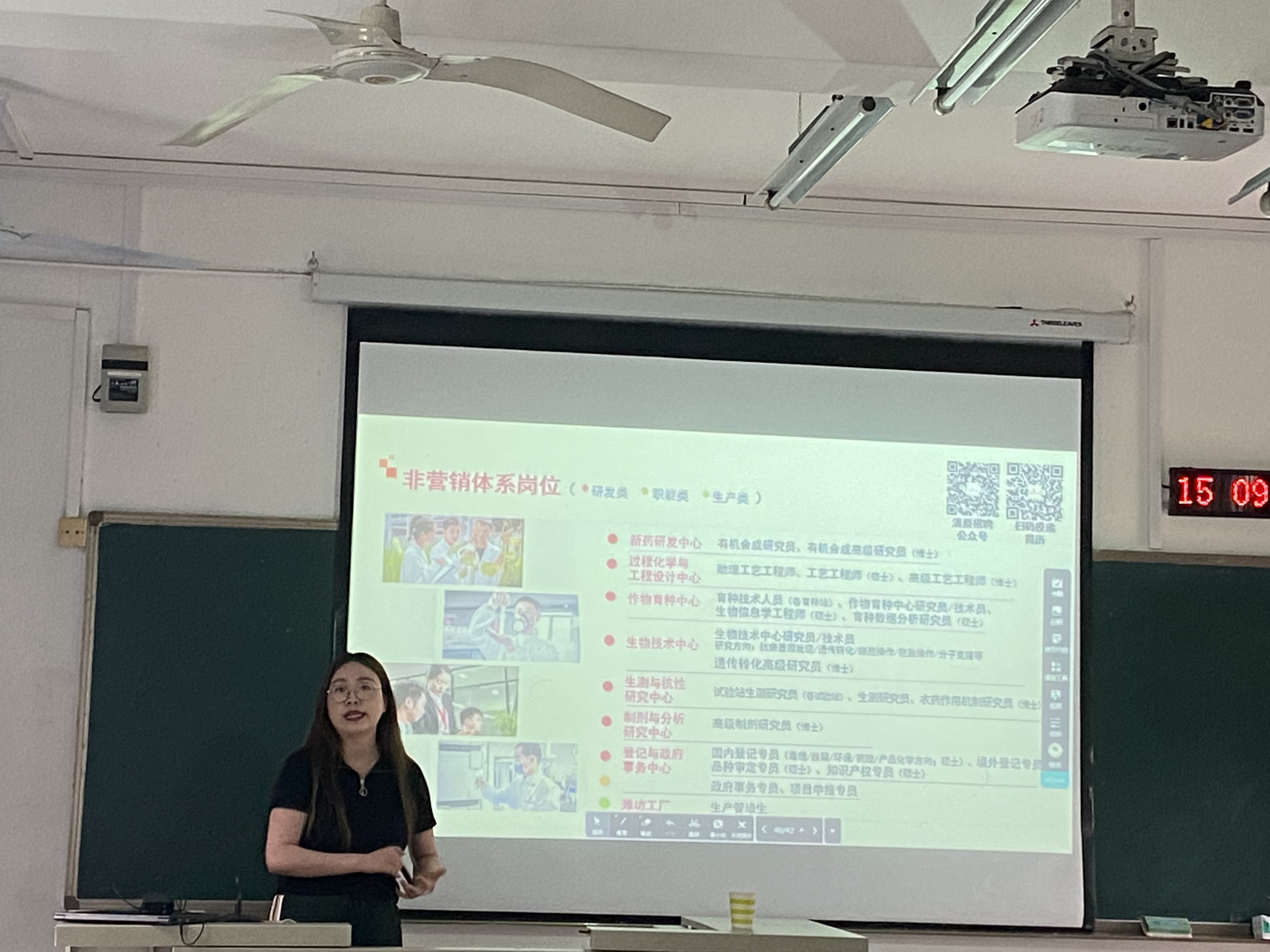 宣讲会上,清原农冠人力资源部负责人赵薇就公司的创建背景、企业文化、发展定位做了详细的介绍。同时对拟招聘的岗位要求、薪资待遇和未来的发展前景做了讲解。通过宣讲让同学们对清原农冠有了全面的认识。