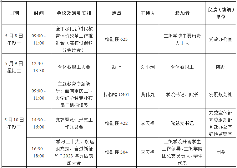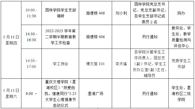 园林学院2022—2023学年第二学期第12周会议 (活动)及工作安排