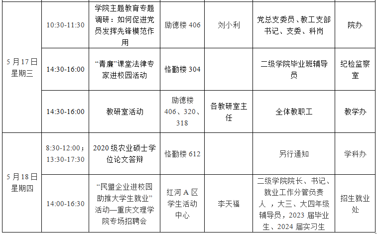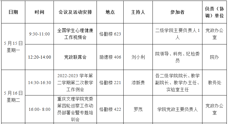 园林学院2022—2023学年第二学期第13周会议 (活动)及工作安排