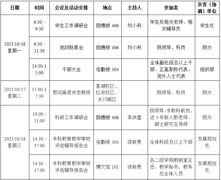 园林学院2023—2024学年第一学期第6周会议 (活动)及工作安排