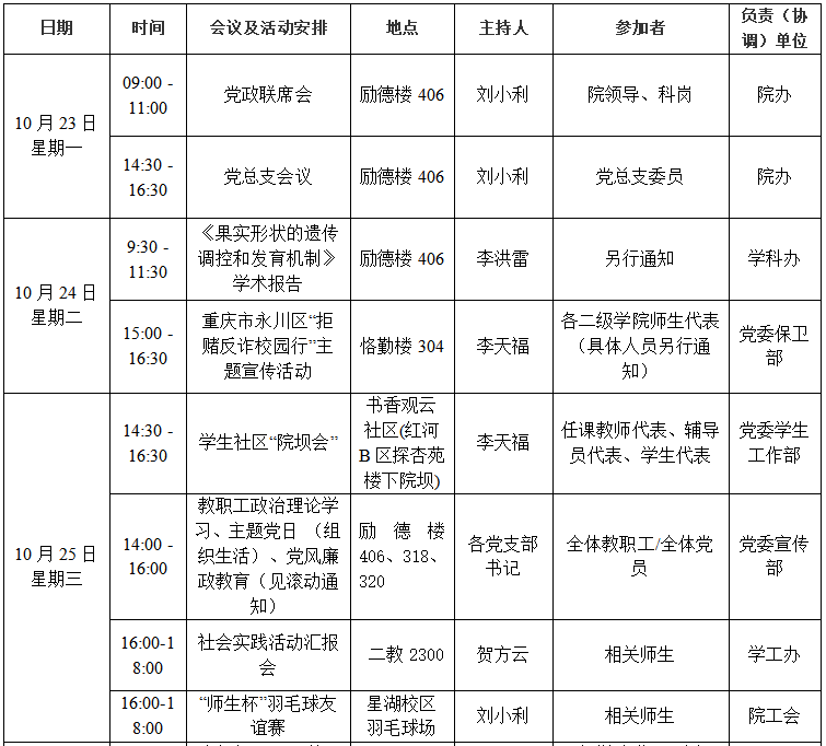 园林学院2023—2024学年第一学期第7周会议 (活动)及工作安排