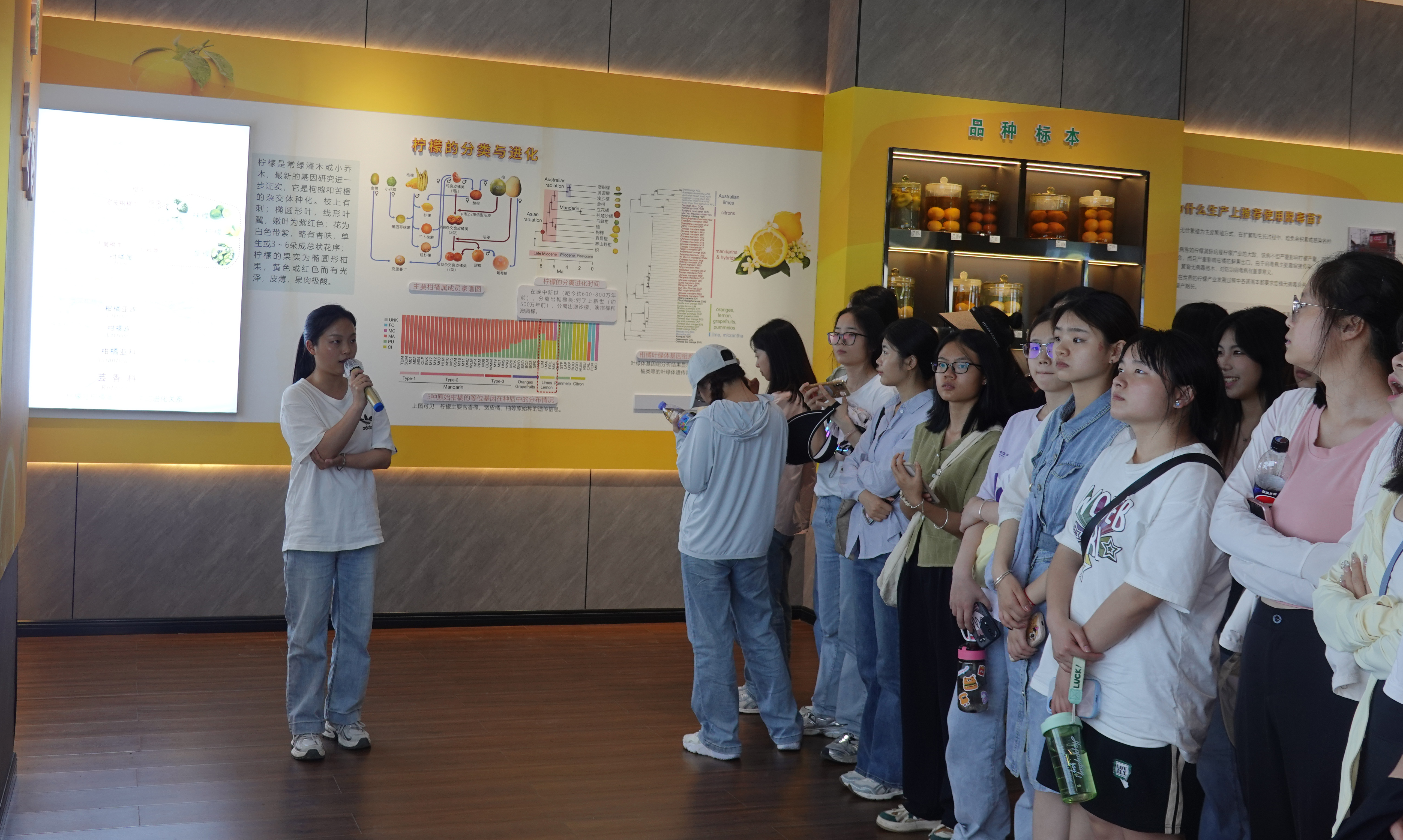 5月19日,我院2022级园艺专业学生一行40余人在任课老师廖钦洪博士的带领下赴重庆市潼南区农业科技投资(集团)有限公司开展参观实习活动,公司技术人员刘婷老师陪同参观。刘老师首先带领学生们参观了潼南脱毒种苗繁育中心,重点介绍了柠檬优良品种病毒病鉴定、无毒材料保存、母本园和采穗圃建立等关键技术环节,学生们也对公司引种的柠檬新品种进行了详尽了解。