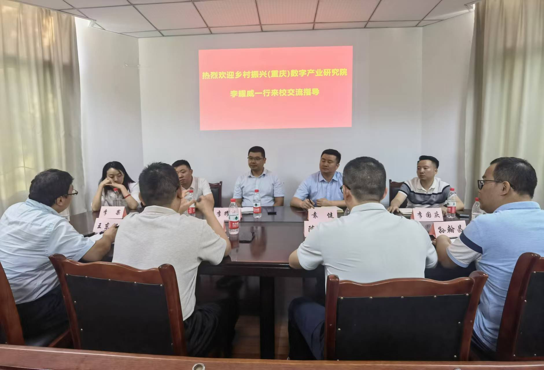 8月15日,乡村振兴(重庆)数字产业研究院总经理助理李耀威、重庆本乐科技股份有限公司总经理李国庆一行5人来院交流指导,学校党委常委、副校长李璐,科技处长陈泽雄,经管学院院长王东强,学院党委副书记、纪委书记孙翰昌参加调研交流。