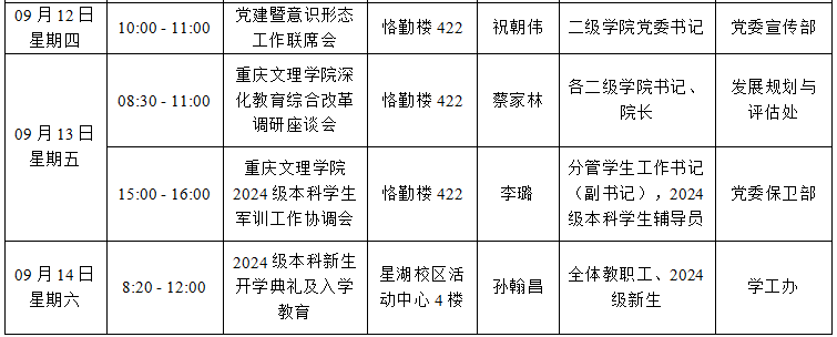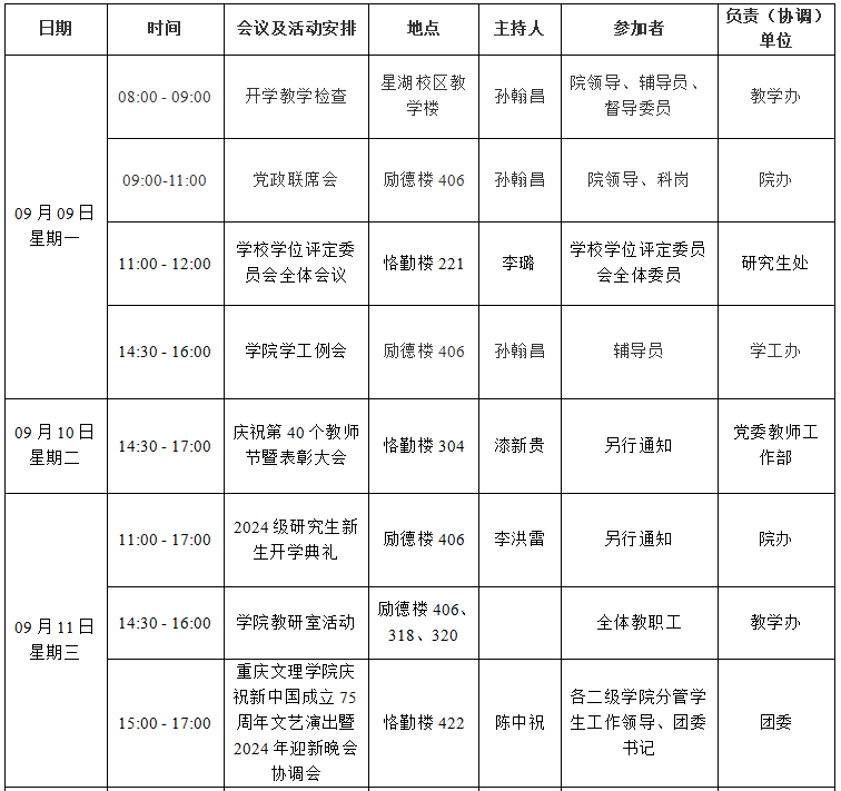 mansion88明升2024—2025学年第一学期第1周会议 (活动)及工作安排