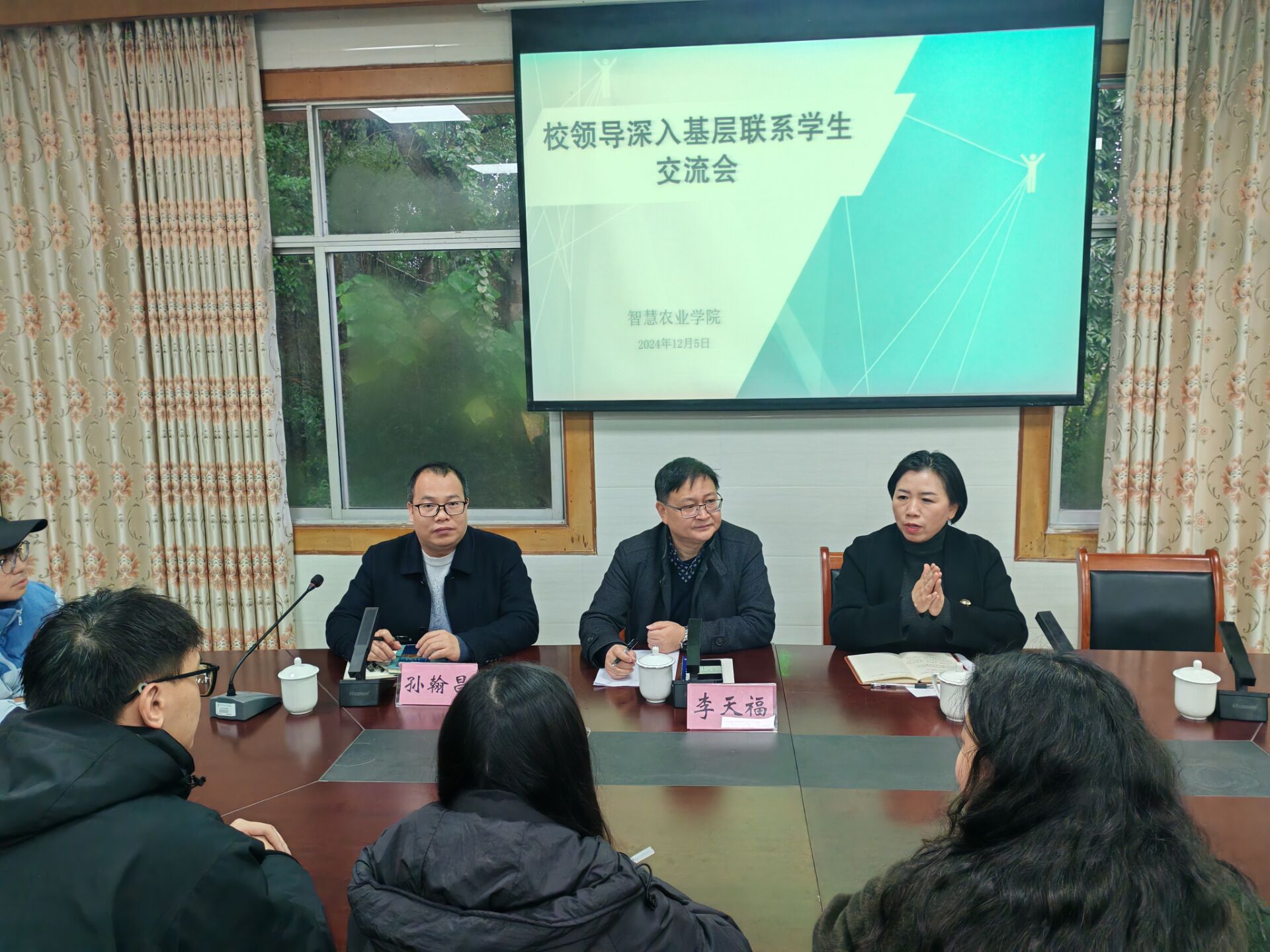 为进一步贯彻落实《关于落实2024—2025 学年领导干部深入基层联系学生及教职工对接联系学生工作的通知》的精神,12月5日,学校党委常委,副校长李天福亲临mansion88明升,在星湖校区励德楼406会议室与2024级农艺与种业专业60余名研究生进行了深入交流。mansion88明升院长陈泽雄,学院党委副书记、纪委书记孙翰昌,学工办主任贺方云,辅导员黄威参加了本次会议,会议由学院党委书记杨桦主持。