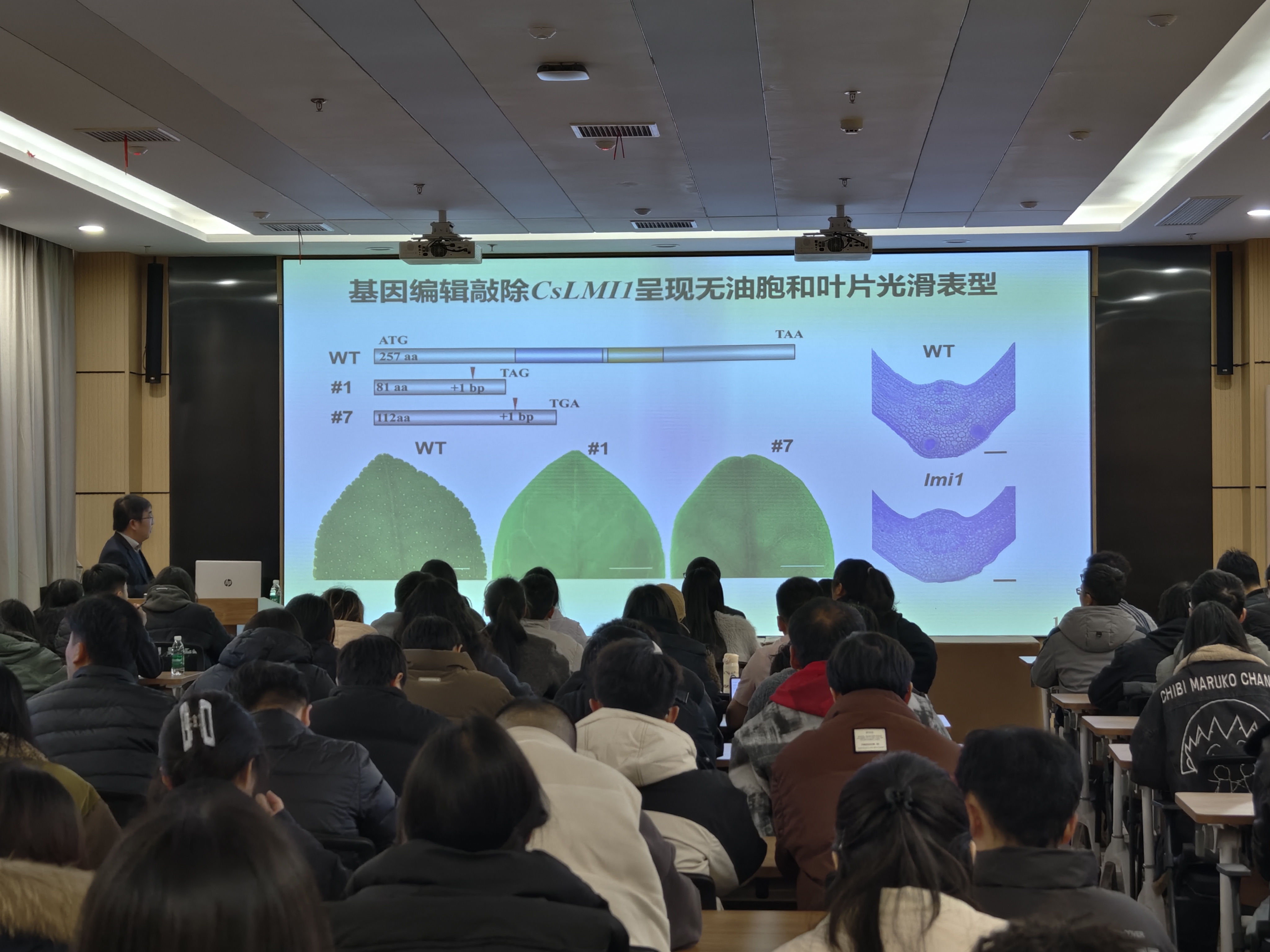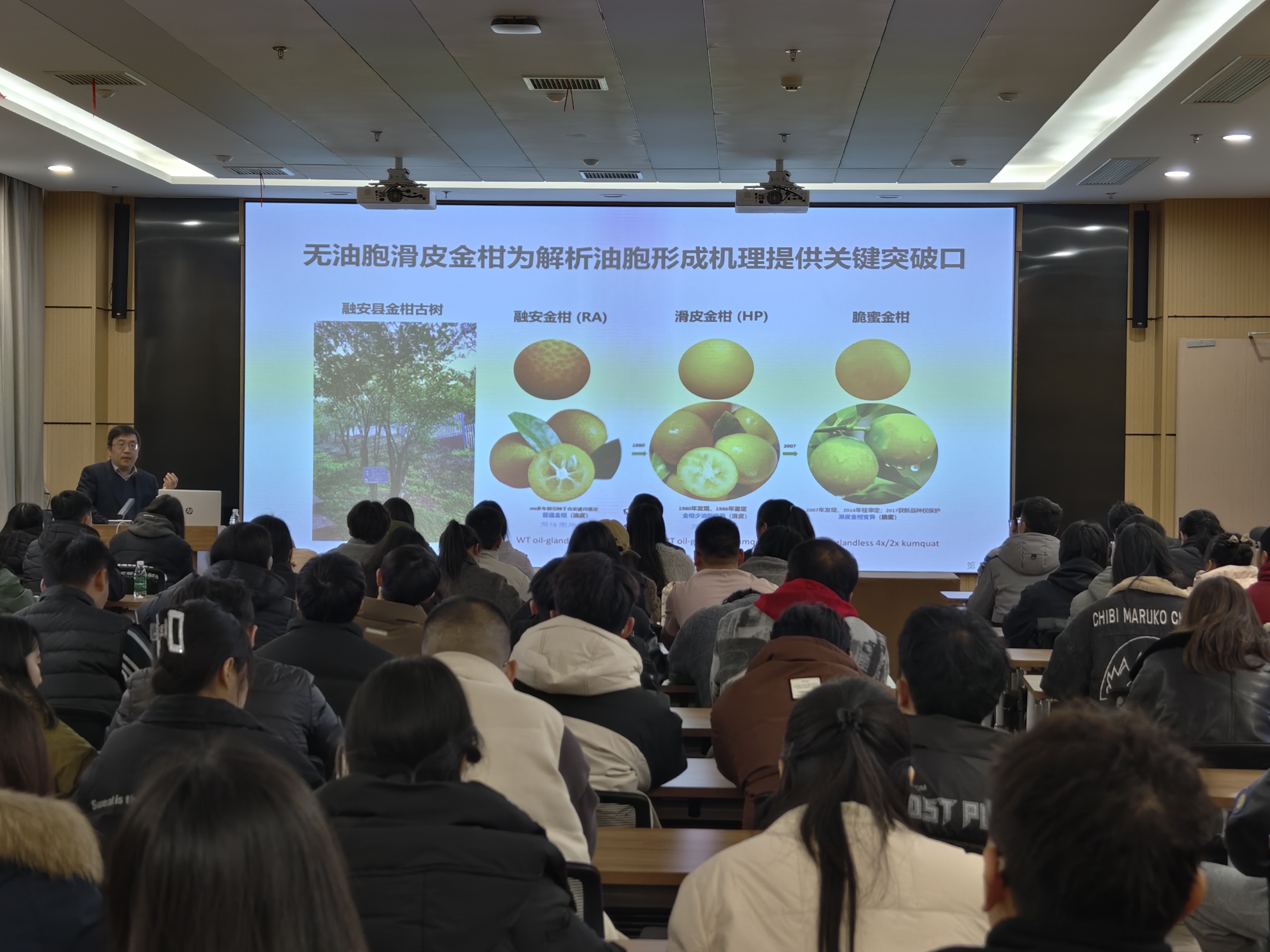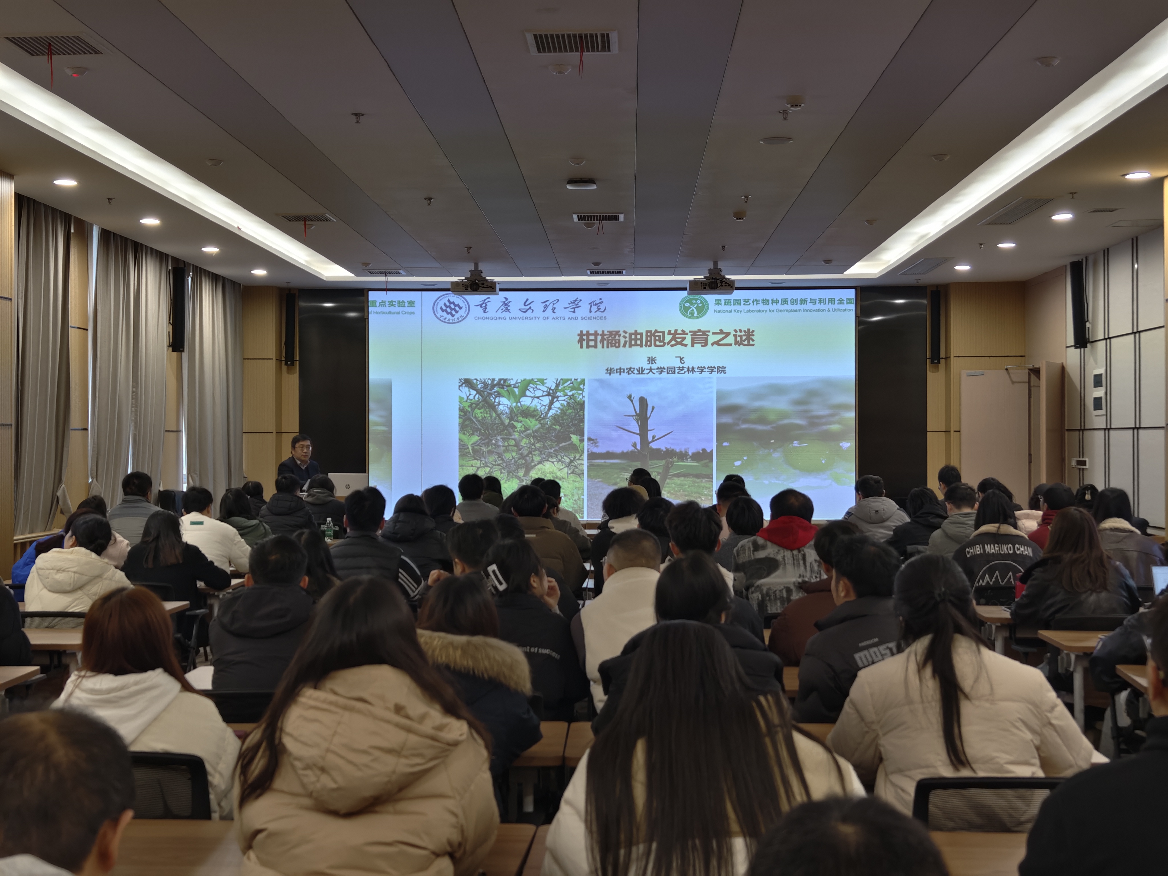 为加快推进我院园艺学博士点培育建设工作,深化学科发展,3月5日下午,华中农业大学园艺林学学院果树系张飞教授应邀来我院做学术报告。此次报告的题目为“柑橘油胞发育之谜”,会议在科技创新中心403室举行,由陈泽雄院长主持,我院90余名研究生和教师代表参加。