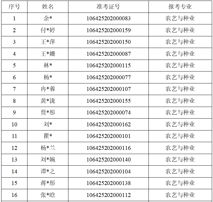 2025年农业硕士研究生一志愿考生复试名单