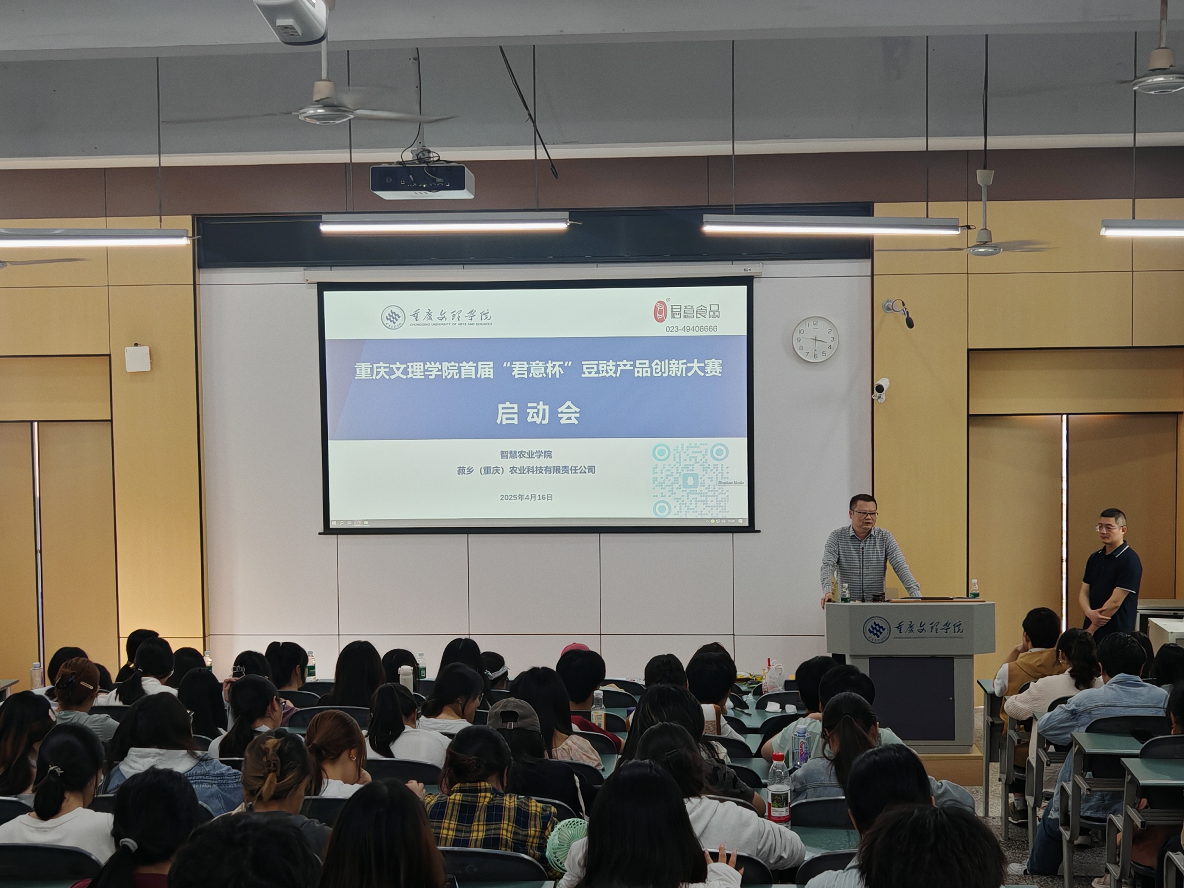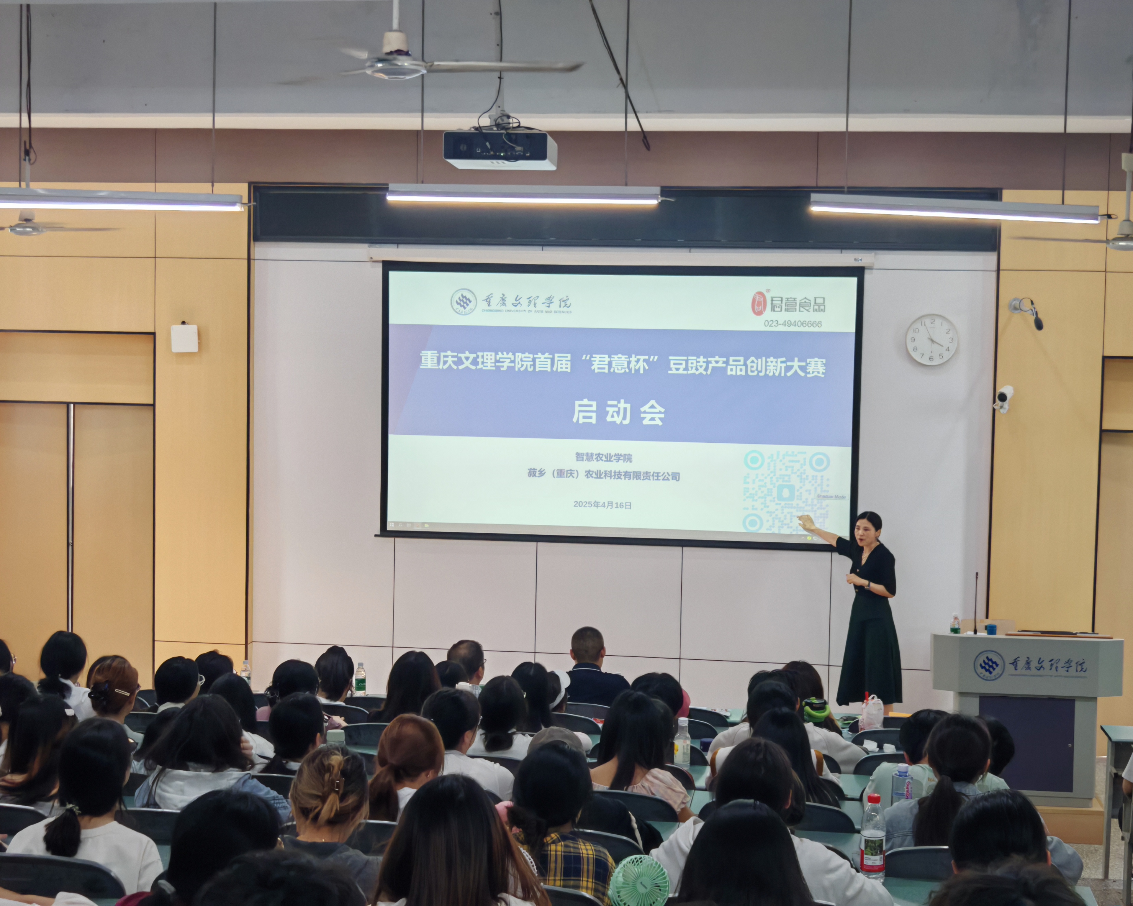 4月16日下午,由学校主办、我院和菽乡(重庆)农业科技有限责任公司承办的首届“君意杯”豆豉产品创新大赛在星湖一阶正式启动。现场吸引了全校200余名学生参与。启动会由食品科学与工程专业骨干教师张美霞教授主持。
