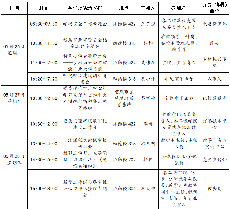 mansion88明升2024—2025学年第二学期第14周会议(活动)及工作安排