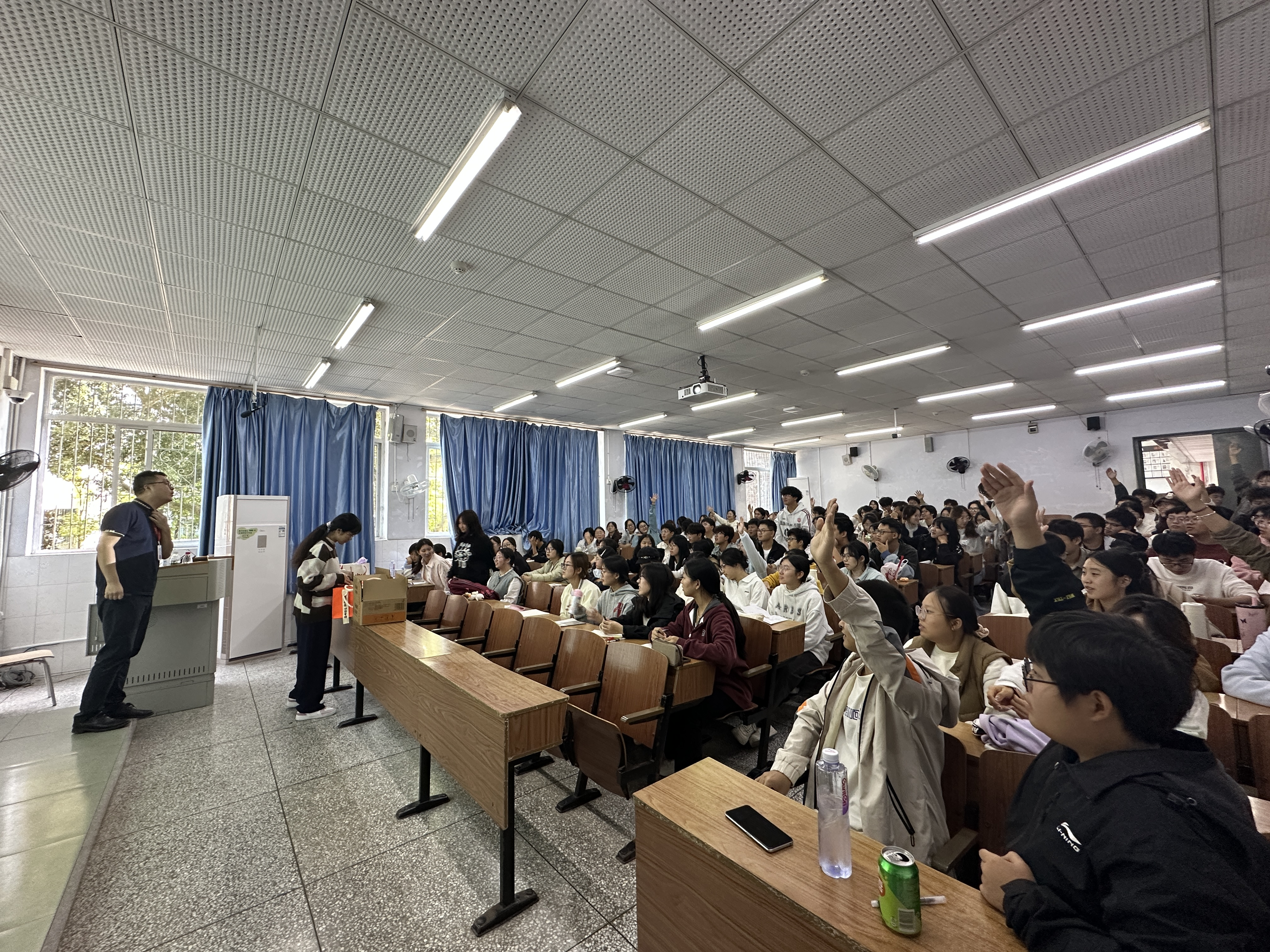 课堂上,徐萌以“餐饮幕后的‘调味人’”为切入点,围绕餐饮行业发展趋势、火锅行业前沿动态、聚慧餐调技术创新实践三大主题展开详细讲解。为激发学生主动思考,授课过程中特别设置互动问答环节,同学们踊跃举手、积极回应,现场气氛热烈。对于回答正确的学生,徐总监还现场颁发了聚慧食品科技有限公司定制纪念品,进一步调动了课堂参与积极性。授课尾声,徐总监鼓励同学们关注“食品数智化”“天然发酵”“功能调味品”等未来核心发展方向,并着重强调“持续学习与跨界创新”对专业成长的重要意义,为学生们提供了极具价值的行业指引。