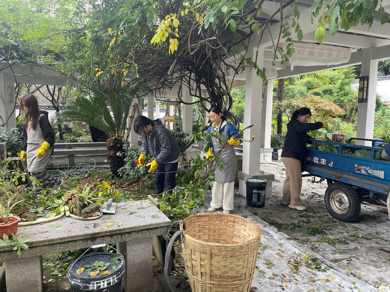 2025年11月12日下午,mansion88明升党委学生第一支部党员15余人在mansion88明升植物园进行植物养护。